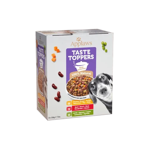 Applaws Taste Toppers Stew Selection Wet Dog Food will liven up your dog’s dry dog food with our Stew Selection packed with chunks of chicken breast, beef or lamb, with vegetables.