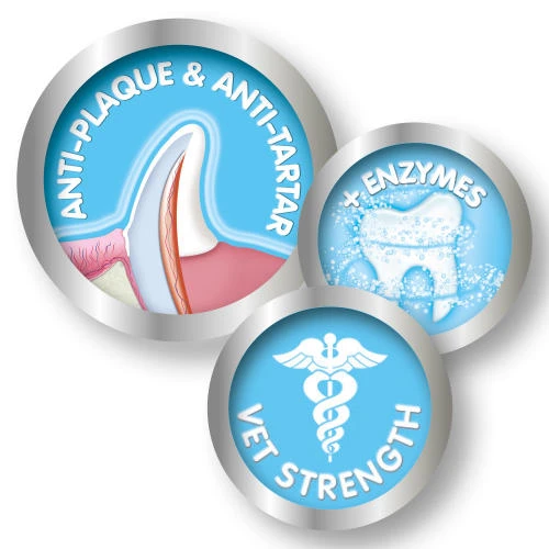 Brushing helps dislodge plaque, then the toothpaste’s special formula goes into action, with two enzymes that fight bad bacteria and help break down hidden plaque. Suitable for dogs and cats.
