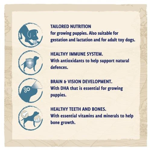 Growing up is hard work for your puppy, especially as he has a lot of growing up to do! It is also specially formulated with selected natural ingredients and a natural prebiotic to help support digestive health to help make sure your puppy is ready to explore the great outdoors every day. And all this without including any added artificial colours, flavours or preservatives.