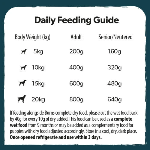 Containing 4 delicious varieties, Burns Wet Food takes inspiration from a home cooked diet and each variety is made with a handful of high quality ingredients. The range is made and produced in Wales and developed by Veterinary Surgeon, John Burns.