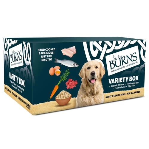Burns Variety Box Wet Adult Dog Food is a delicious range of our award-winning wet food. Can’t choose between free-range egg, chicken, lamb or white fish? Well, now your dog can sample all 4! Variety is the spice of life.