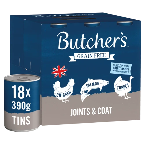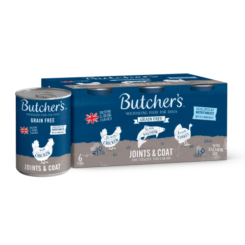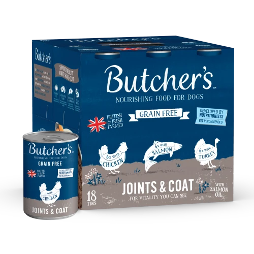Butchers Joints & Coat Dog Food Tins contains 3 mouthwateringly delicious flavours that are bursting with all the essential nutrients that senior dogs need to be at their best. What’s more, the recipes include chicory, a natural digestive herb and added prebioitic to help support your dog’s natural immunity.