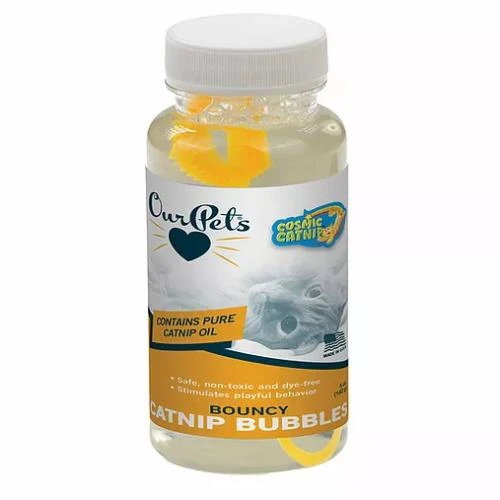 Cosmic Catnip Bubbles contain pure, high quality catnip oil that’s safe, non-toxic and dye free, so you don’t have to worry about them popping on the carpet. Have fun as your cat leaps about as you blow these very special catnip bubbles!