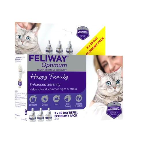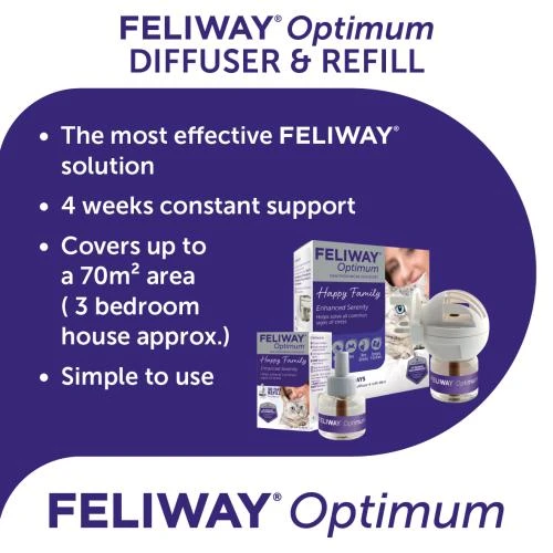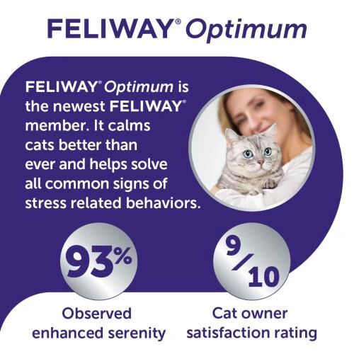 Feliway Optimum Cat Calming Diffuser Refill is the latest edition to the Feliway range and now calms cats better than ever before and in more situations for enhanced serenity.