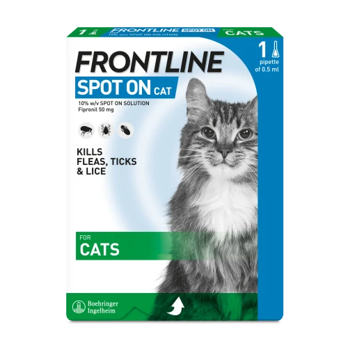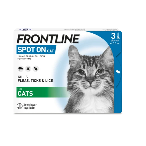 FRONTLINE Spot On is the original flea and tick spot-on formula from FRONTLINE, first used by vets, now available without a prescription. Once applied, the treatment will protect cats from fleas, ticks and lice – use monthly all year round.