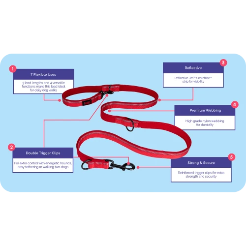 Perfect for night-time walks, this dog lead features premium grade nylon webbing in a colourful two-tone design, plus reflective 3M™ Scotchlite stitching for high visibility in low light.