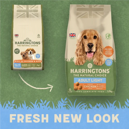 This specially made lighter recipe is packed full of natural ingredients and is carefully balanced for overweight dogs. With added benefits for overweight dogs including glucosamine & chondroitin blend to help support joint structure and movement, and 25% less fat than our standard Harringtons adult recipe.