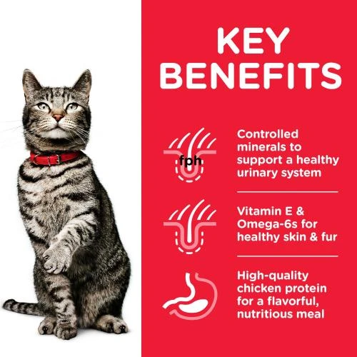 Hills Science Plan Urinary Health Chicken Dry Adult Cat Food has been formulated on support the health of the whole urinary system with controlled minerals. Suitable for sterilised cats.