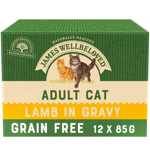 James Wellbeloved Grain Free Lamb Adult Cat Pouches is a fantastic dietetic food, excellent for the reduction of ingredient and nutrient intolerances. This recipe contains selected protein sources (lamb) and selected carbohydrate (potato and cassava) for an excellent taste your cat will love.
