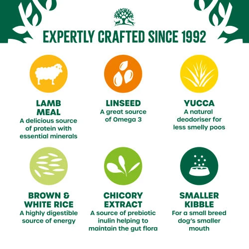 James Wellbeloved Lamb & Rice Small Breed Dry Adult Dog Food is complete recipe that’s been formulated and designed for the specific needs of small breed dogs aged over 6 months and weighing up to 10kg