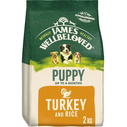 James Wellbeloved Turkey & Rice Dry Puppy Food is an exceptionally tasty recipe of turkey and rice that’s ideal for puppies up to 6 months of age. Because it’s hypo-allergenic and easy to digest it will be kind to developing stomachs and give your puppy everything they need for the best start in life.
