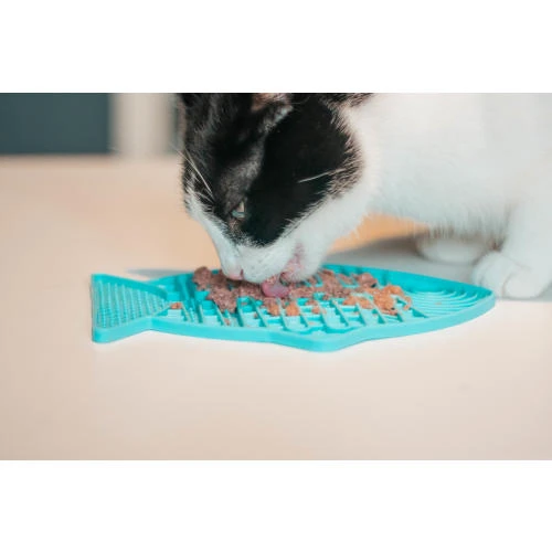 Best used with wet and raw food. Spread your carts soft food or treat over the mat surface with the back of a spoon or spatula. Ensure food is nicely embedded in the surface. Experiment with different foods and treats.