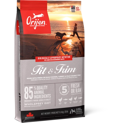 Orijen Fit & Trim Adult Dog Food has been crafted to help your dog thrive with the power of protein-rich recipes that provide peak nourishment. Dogs are ancestral carnivores, so they need a Biologically Appropriate diet rich and varied in whole animal ingredients.
