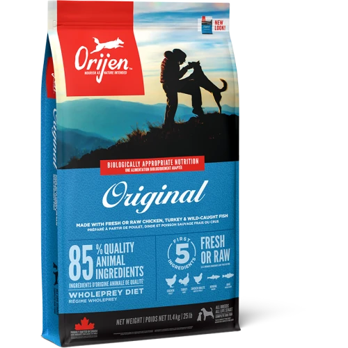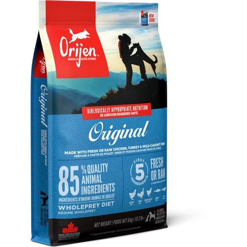 Orijen Original Adult Dog Food is a delicious recipe that’s been crafted to help your dog thrive with the power of protein-rich recipes that provide peak nourishment. Dogs are ancestral carnivores, so they need a Biologically Appropriate diet rich and varied in whole animal ingredients.
