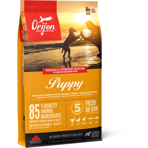 Orijen Puppy Food has been crafted to help your puppy thrive with the power of protein-rich recipes that provide peak nourishment. All puppies do best on a Biologically Appropriate diet rich in protein and fat from quality animal ingredients to support their development.