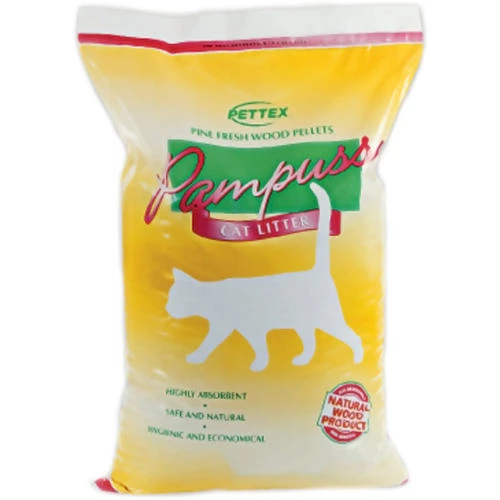 Pettex Pampuss is made up of Woodflour pellets which are highly absorbent. These bags are lighter to handle than most other cat litters and very easy to dispose of. Woodflour is 100% biodegradable and comes with a pine fresh fragrance to keep your home pleasant.
