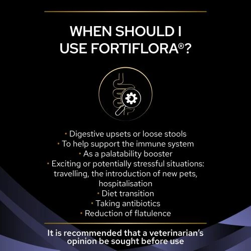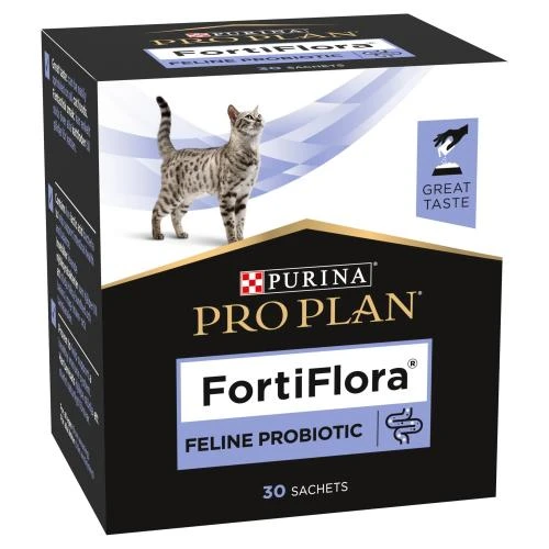 PURINA Pro Plan Fortiflora for cats is a supplemental probiotic to help cats and kittens of any age suffering with stomach upsets such as gastroenteritis, imbalanced gut microflora, and diarrhoea resulting from antibiotics, stress, or a change in diet. Formulated with a strain of probiotic exclusive to Purina, FortiFlora stimulates production of friendly bacteria in your cat’s gut, and is scientifically proven help bring about normal intestinal health.