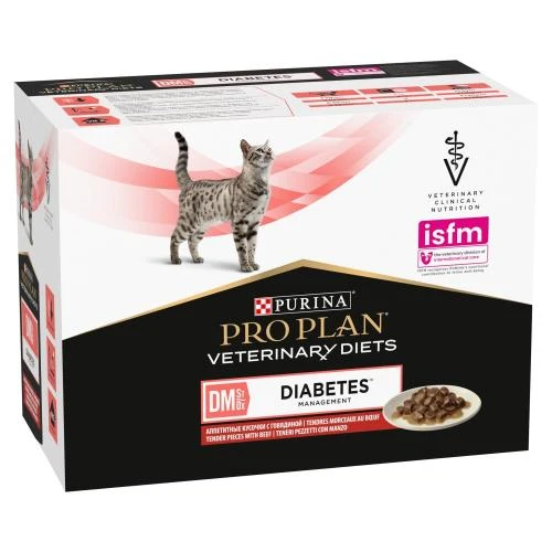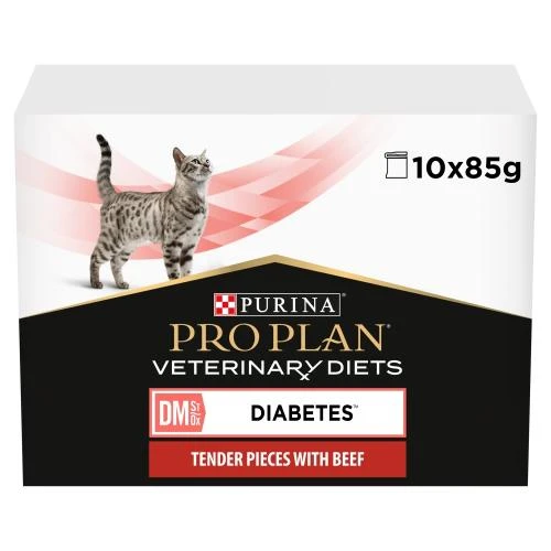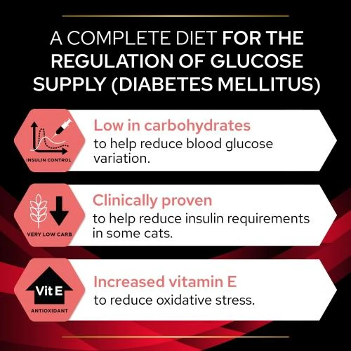 PURINA VETERINARY DIETS DM is a scrumptious clinical recipe designed to help diabetic adult cats better regulate their glucose levels, scientifically demonstrated to minimise your pet’s reliance on external insulin sources. Formulated with exceptionally low carbohydrate levels in order to reduce hyperglycaemia, Feline DM is also rich in vitamin E, an antioxidant, to help counteract the increased oxidative stress that can arise in diabetic cats.