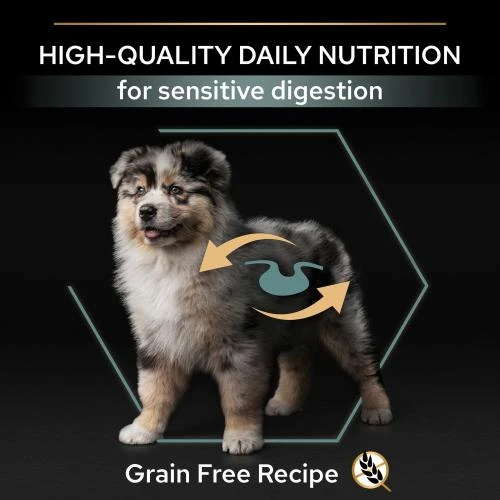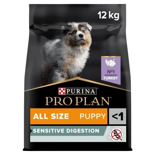 PRO PLAN Sensitive Digestion Grain Free Rich in Turkey Dry Medium Puppy Food is made by Purina’s vets and nutritionists to give complete, balanced nutrition to puppies with tummy troubles. Pro Plan Puppy Digestion is carefully cooked to look in all the natural goodness, helping to give your puppy the best start to life.