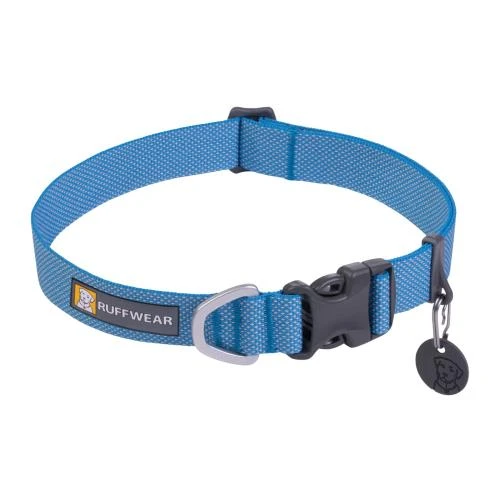 Ruffwear Hi & Light Collar in Blue Dusk is a super light dog collar with a minimalist design. Built with webbing inspired by rock climbing slings and runners known for their impressive strength-to-weight ratio, the Hi & Light Collar keeps it simple with a strong side-release buckle for easy on/off and Ruffwear’s signature collar features: an aluminium D-ring, a piton-inspired separate ID tag attachment point, and a silicone tag silencer.