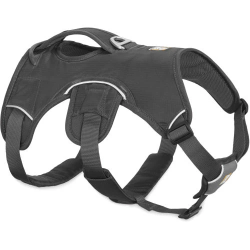 Ruffwear Webmaster Dog Harness in Twilight Grey is a secure, supportive, multi-use body harness built for manoeuvring and assisting dogs up and over obstacles. Thin, durable, perforated foam provides breathable support without hindering range of motion. Five points of adjustment create a secure fit, while padded chest and belly straps make the Web Master comfortable for all-day wear.