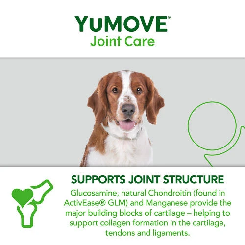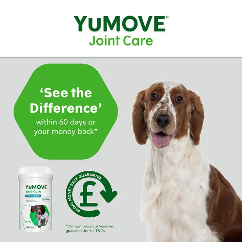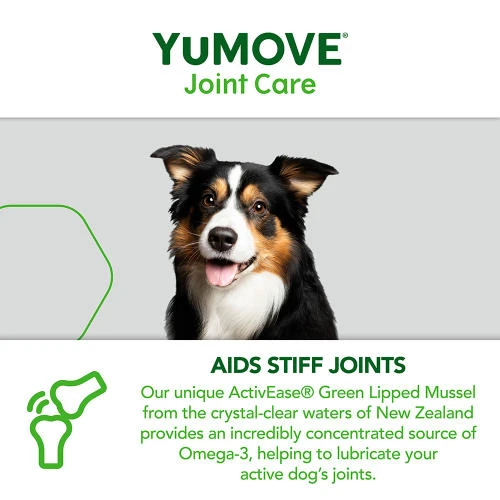 Keep your working dog moving with a unique formula that supports stamina in the field. YuMOVE Joint Care for Working Dogs, previously YuMOVE Working Dog, is a clinically proven formula packed with high-quality ingredients and joint-soothing goodness. YuMOVE’s unique form of ActivEase Green Lipped Mussel (GLM) contains higher levels of Omega-3 fatty acids than other standard GLM powders. It’s a similar story with Hyaluronic Acid. YuMOVE’s particular version is proven to reach your dog’s joints within just 2 hours. Combined, the unique ingredients in YuMOVE deliver the optimal recipe to aid stiff joints.